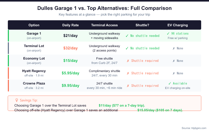 How Does Garage 1 Compare to Other Dulles Parking Options?