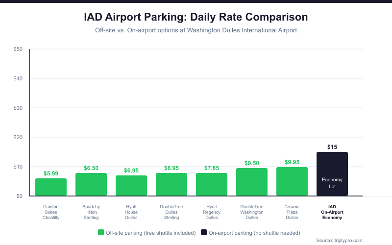 For a full breakdown of how IAD's on-airport Economy shuttle compares, see our Dulles Airport Economy Parking Bus guide.