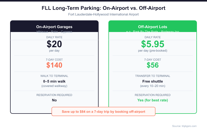 For a full cost-by-day breakdown including weekly totals, see our dedicated article on Fort Lauderdale Airport long-term parking cost.