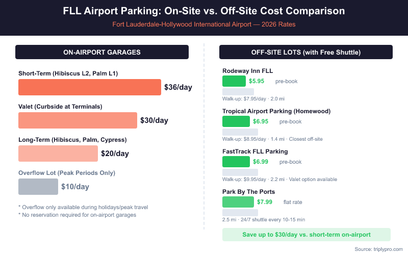 - Off-site lots start from $7.95/day — all include free shuttle service to FLL terminals
