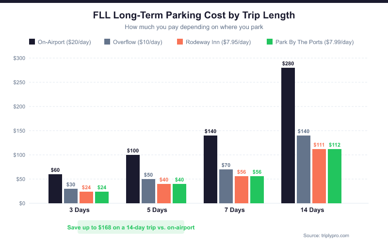 For a deeper dive into per-day rate breakdowns across all FLL options, see our Fort Lauderdale airport parking price per day guide.