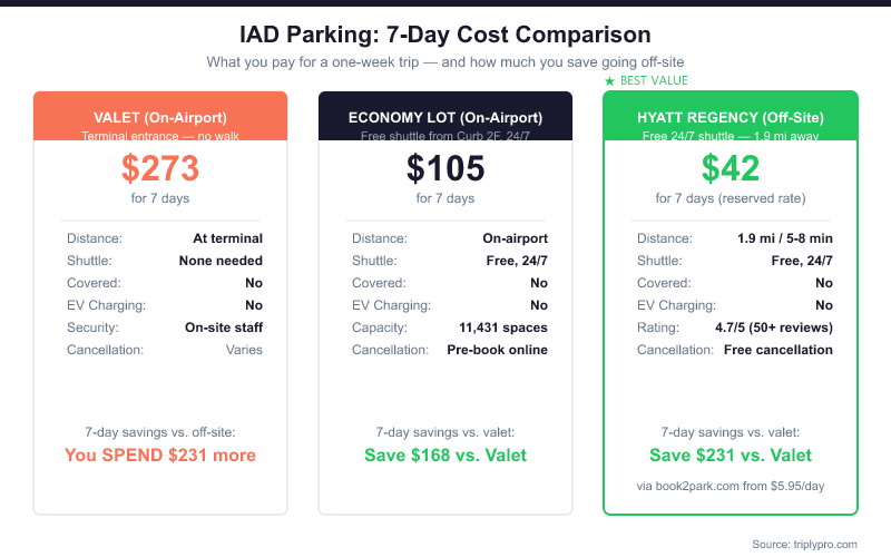 - Visit Triply's IAD parking search to compare all verified off-site lot rates in one place.