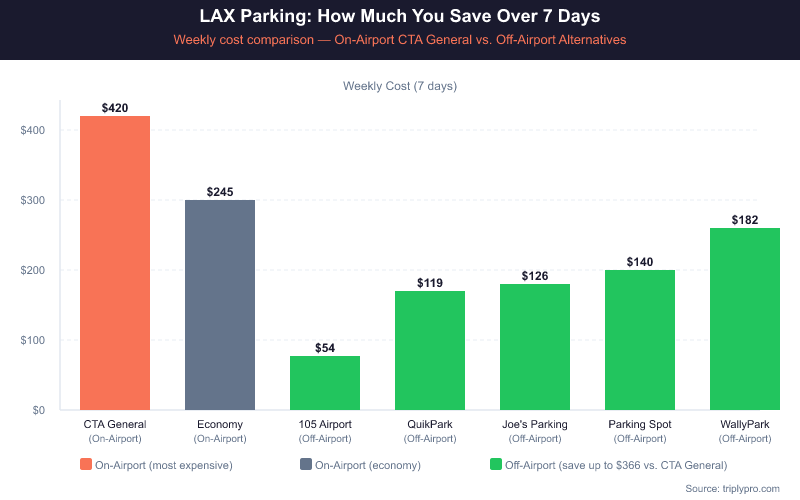 For most travelers taking multi-day trips, the math is clear: an off-site lot saves real money with minimal added hassle. For a single overnight trip where you want to sprint from the car to the gate, the CTA garage wins. Our article on LAX long term parking breaks down which options hold up best for extended trips of a week or more.