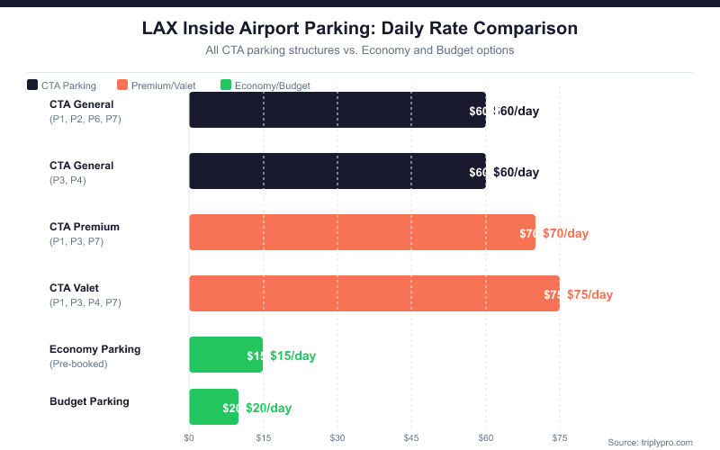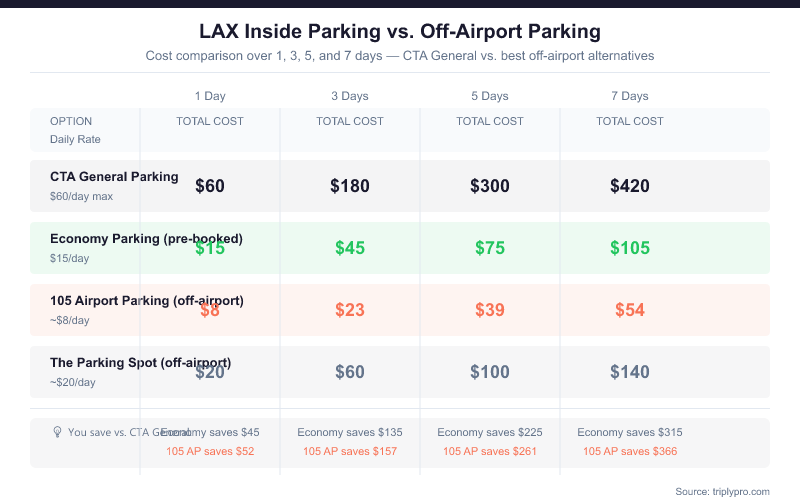 For a deeper look at how every rate tier compares across all LAX options, the LAX airport parking prices guide breaks down every rate with real examples.