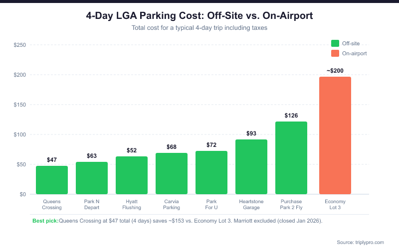 - Avoid the Marriott lot. The LaGuardia Marriott parking facility closed indefinitely as of January 31, 2026 due to construction. Some booking platforms may still show it — verify before arriving.