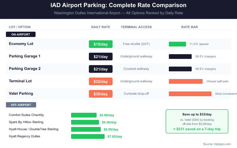 Parking at IAD Airport Cost: Every Rate Compared 2026