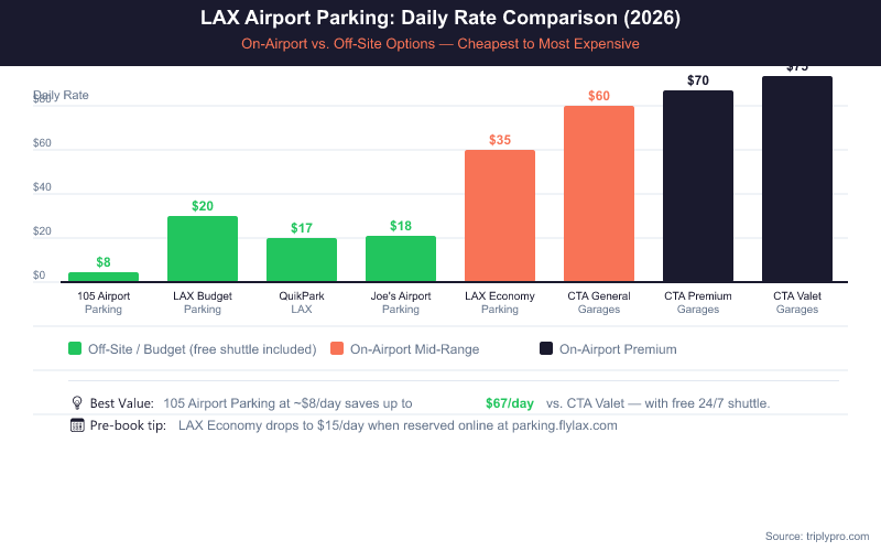 Here is a full comparison of every verified LAX parking option, based on current rates (verified April 2026):