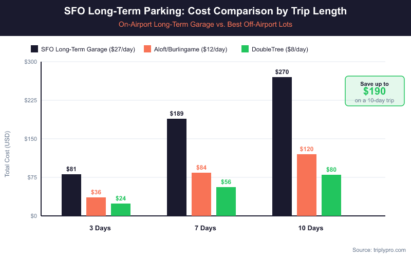 For a full breakdown of how these numbers shift across trip lengths, see our San Francisco Airport long-term parking price guide.