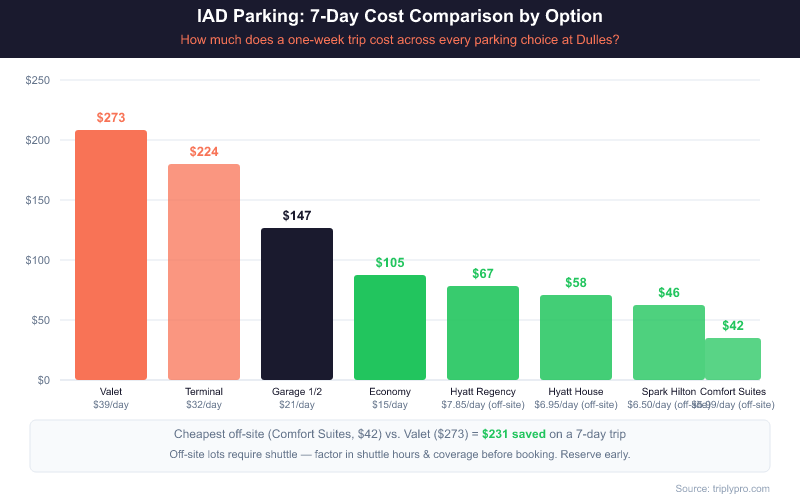 - Go to reserve.flydulles.com for official on-airport lots, or search IAD off-site options on Triply.