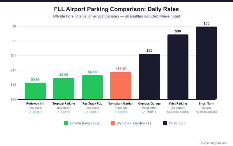 For a full breakdown of what other off-airport lots charge, see our guide to airport parking near FLL with 2026 rates and lot comparisons.